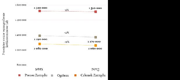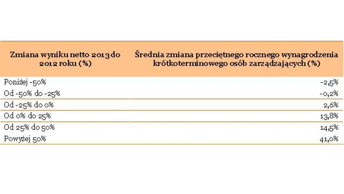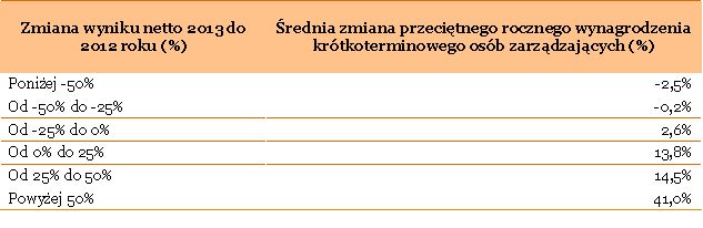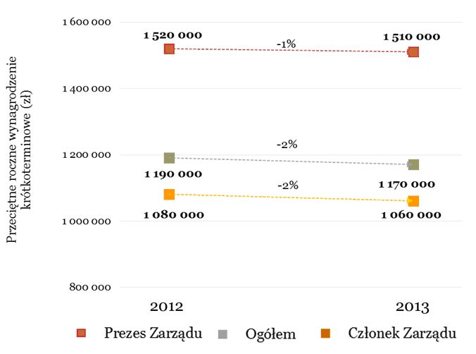 Prezesi zarz?dów największych spółek giełdowych zarobili średnio w 2013 roku po 1,5 mln złotych czyli ok. 1% mniej niż rok wcześniej – wynika z najnowszego badania PwC „Wynagrodzenia zarz?dów największych spółek giełdowych w 2013 r.” Przeciętne wynagrodzenie pozostałych członków zarz?du wyniosło w 2013 r. ok. 1,1 mln zł, tj. o ok. 2% mniej niż w roku poprzednim. Oznacza to, że wraz z sytuacj? gospodarcz? stabilizuje się również poziom wynagrodzeń najwyższej kadry zarz?dzaj?cej. Zahamowanie tempa wzrostu wynagrodzeń zarz?dów spółek z GPW widoczne jest w tym roku szczególnie w odniesieniu do premii – była ona o 9% niższa niż w roku ubiegłym, co jest ściśle zwi?zane z sytuacj? gospodarcz? i wynikami finansowymi przedsiębiorstw.