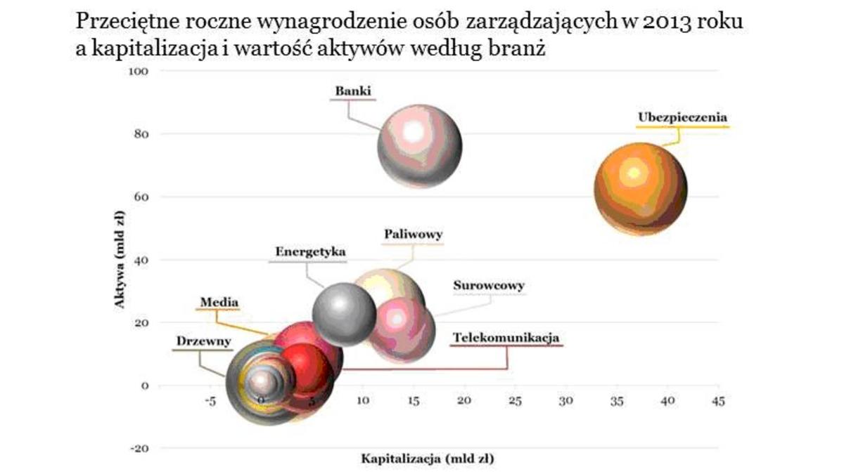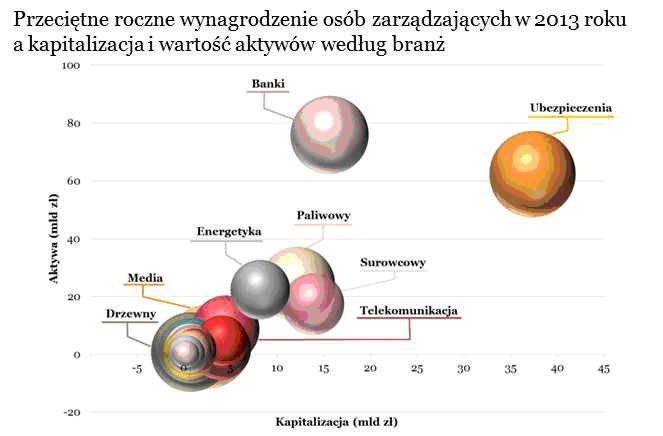 Najbardziej atrakcyjne wynagrodzenia od kilku lat oferuje branża mediowa, pomimo 16% spadku płac najwyższej kadry zarz?dzaj?cej w tym sektorze - w tym roku formalnie na 2 miejscu za branż? ubezpieczeniow?, reprezentowan? jednak jedynie przez jedn? spółkę. W czołówce najlepiej płac?cych sektorów znalazł się także ponownie sektor bankowy – w tym roku na czwartym miejscu ze względu na awans przemysłu drzewnego (2 spółki na GPW). Uwagę zwraca branża paliwowa, która w roku 2013 odnotowała jeden z wyższych wzrostów wynagrodzeń w stosunku do roku 2012 (ok. 32%). Jest to zwi?zane z wypłat? premii w sektorze zwi?zan? z popraw? wyników. Największy spadek poziomu wynagrodzeń odnotował w roku 2013 sektor metalowy, w którym płace członków zarz?dów spadły o ok. 47% w stosunku do roku 2012. Spore spadki wynagrodzeń obserwowaliśmy także w przypadku energetyki i sektora spożywczego.
