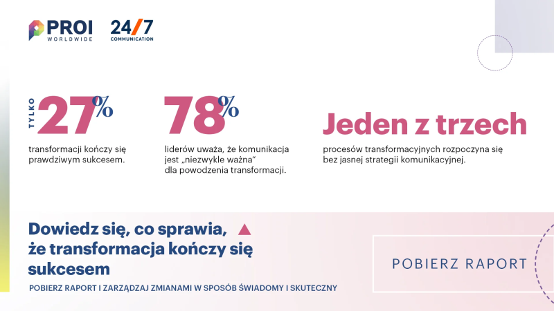 Globalne badanie PROI Transformation Readiness Index 2025 ujawnia, że zaledwie co czwarta organizacja potrafi skutecznie przeprowadzić proces zmiany. Główny powód? Braki w komunikacji.