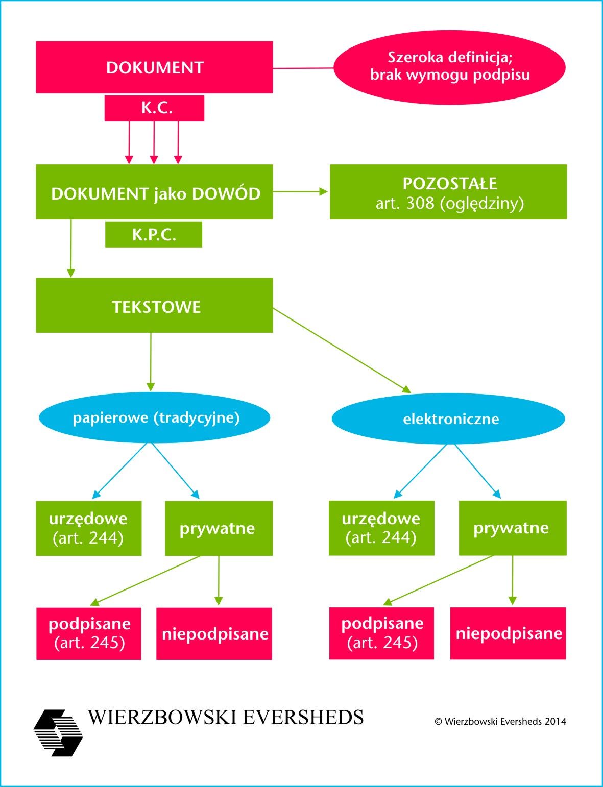 Do dokumentów tekstowych zastosowanie znajd? dotychczasowe, choć zmodyfikowane, reguły wyrażone w art. 244 i nast. k.p.c., a do pozostałych dokumentów (nie zawieraj?cych tekstu) – odnosić się będzie art. 308 k.p.c. Zgodnie z proponowan? treści? art. 2431 k.p.c., przepisy oddziału „Dokumenty” znajd? zastosowanie do dokumentów zawieraj?cych tekst, umożliwiaj?cych ustalenie ich wystawców (zatem, zarówno do dokumentów papierowych, jak i elektronicznych). Tymczasem, art. 308 po nowelizacji nakaże odpowiednie stosowanie do dowodów z dokumentów innych niż wymienione w art. 2431 k.p.c., przepisów o dowodzie z oględzin.