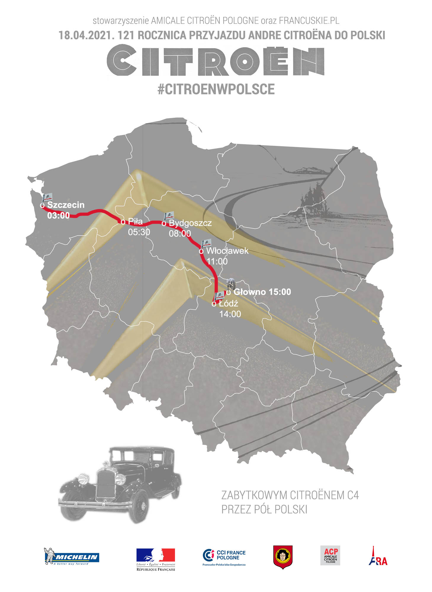 „Chcemy przypomnieć, że historia firmy Citroën rozpoczęła się w naszym kraju i gdyby nie wizyta Andre w Głownie, być może nie powstał by żaden z legendarnych modeli, takich jak Traction Avant, 2CV, DS, CX czy XM. Przejazd zaczynamy na ulicy Andre Citroëna 1 w Szczecinie w nocy, by o godzinie 15:00 pojawić się w Głownie. W Głownie zostanie zainscenizowany przyjazd Andre Citroëna, którego zagra aktor, Zachariasz Muszyński.