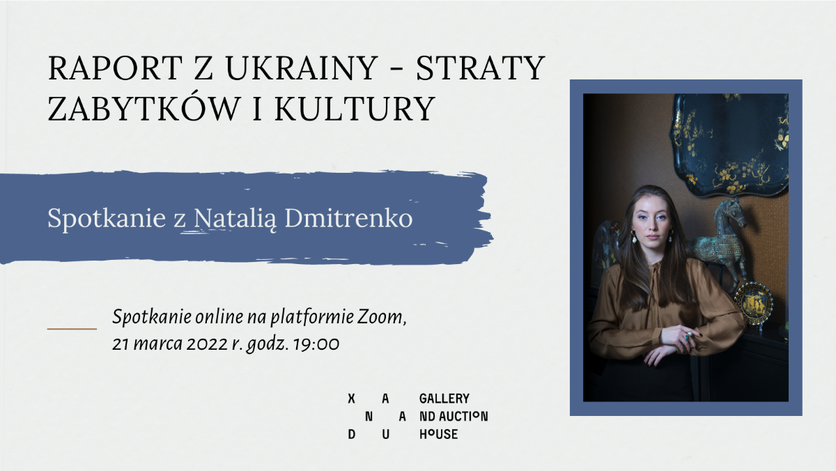 Dzień dobry, chcielibyśmy zaprosić Cię na wyjątkowe i bardzo ważne spotkanie, które organizujemy online już w poniedziałek 21 marca 2022 r. o godz. 19:00 wraz z Natalią Dmitrenko - pochodzącą z Kijowa historyczką sztuki, specjalistką w zakresie budowania i zarządzania kolekcjami dzieł sztuki.