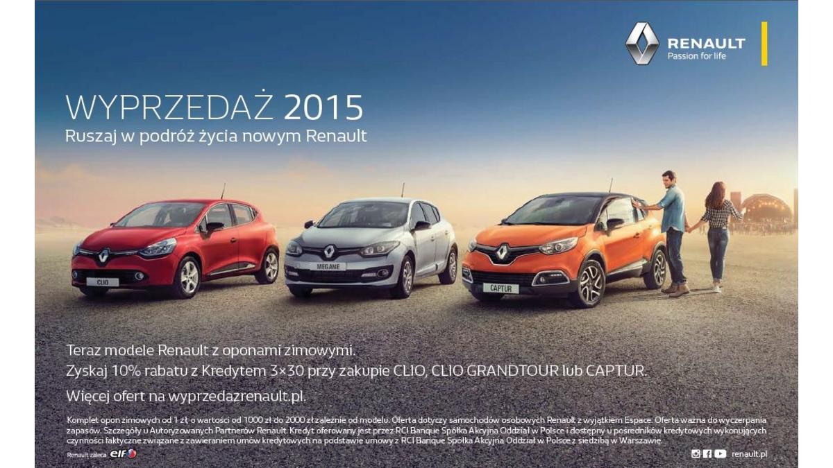 Aktualnie wybór samochodów w promocji wyprzedażowej rocznika 2015 jest duży. Wyprzedaż potrwa do wyczerpania zapasów. Szczegóły na stronie www.renault.pl