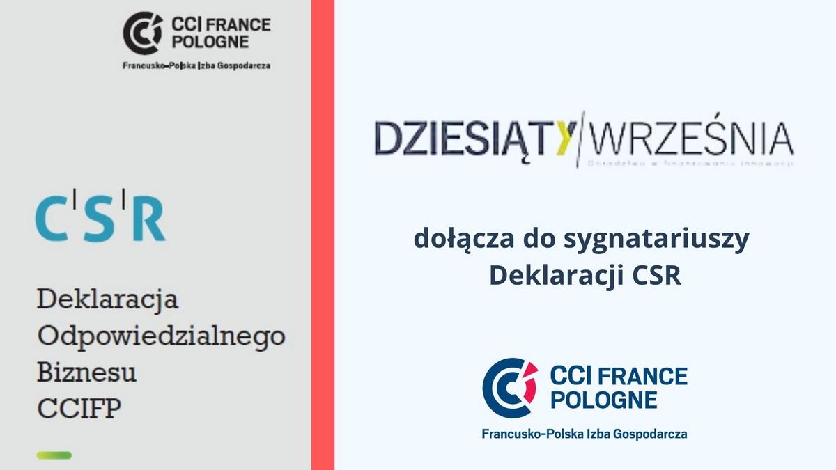 Firma DZIESIĄTY|WRZEŚNIA, wspierająca przedsiębiorstwa w określaniu aktywności badawczej i innowacyjnej, która niedawno przystąpiła do Francusko-Polskiej Izby Gospodarczej, stała się setnym sygnatariuszem Deklaracji Odpowiedzialnego Biznesu CCIFP.