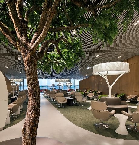 Podróżni mog? również relaksować się w spa, w którym firma Clarins oferuje gościom business lounge szereg bezpłatnych zabiegów. Każdy z nich trwa około 20 minut i wymagana jest wcześniejsza rezerwacja. Po zabiegu pasażerowie mog? się odświeżyć w eleganckiej łazience wyposażonej w kabinę prysznicow? i zestawy kosmetyków. Natomiast w części restauracyjnej czeka bogat? ofertę dań – w tym również posiłki na ciepło. Na ogromnej powierzchni poczekalni, poza klasyczn? restauracj? funkcjonuje kilka osobnych barów i kawiarni.