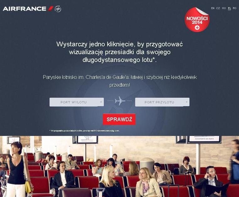 Linia Air France udostępniła serwis internetowy, który pokazuje nie tylko wizualizację przesiadki na lotnisku w Paryżu ale również mapkę z zaznaczonymi punktami usługowymi. Wystarczy na stronie www.przesiadkawparyzu.pl wybrać miasto, z którego rozpoczynamy podróż lotnicz? oraz miejsce docelowe. Po kliknięciu przycisku „sprawdź”, serwis wygeneruje szczegółowy plan oraz określi szacunkowy czas potrzebny na transfer pomiędzy terminalem przylotu a terminalem odlotu. Należy pamiętać, że trasa przesiadki będzie się różnić w zależności od tego, która bramka wejścia do samolotu (tzw. gate) zostanie wyznaczona dla naszego rejsu międzykontynentalnego. Następnie z rozwijanej listy „dostępnych usług” można wybrać to co nas najbardziej interesuje, a serwis automatycznie naniesie je na nasz? mapkę. Do wyboru poza sklepami, bankomatami, aptekami czy restauracjami s? również masaże, część rozrywkowa czy fotele relaksuj?ce.