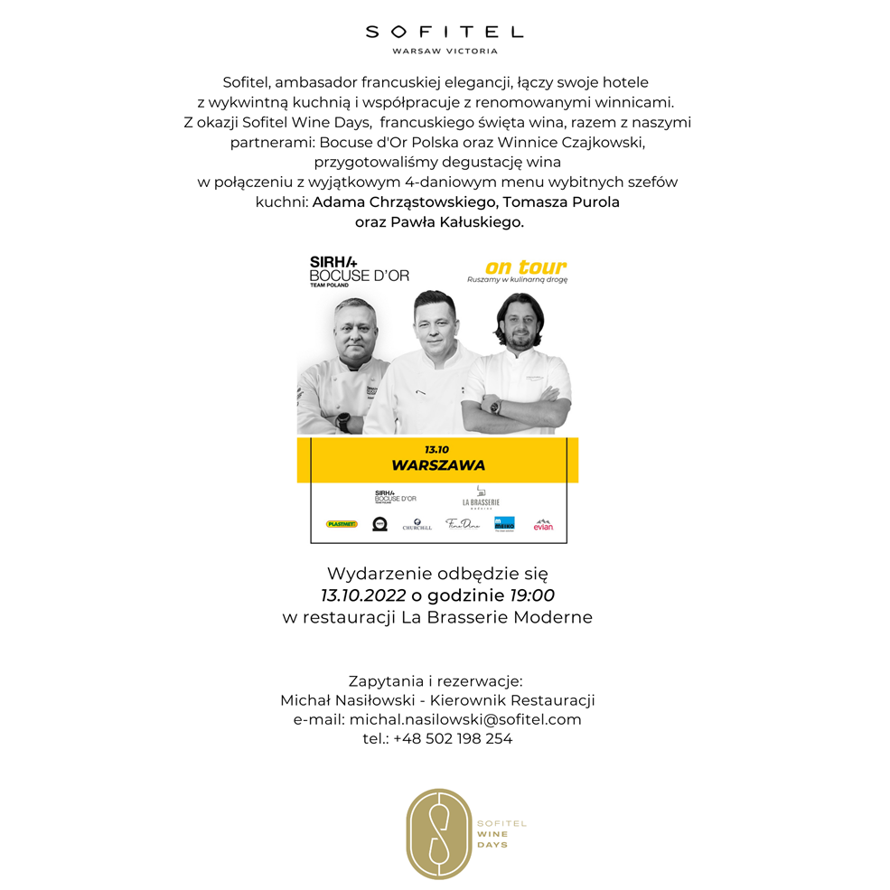 Sofitel Wine Days & Bocuse d'Or Polska- kolacja z degustacją wina 13.10.2022 La Brasserie Moderne