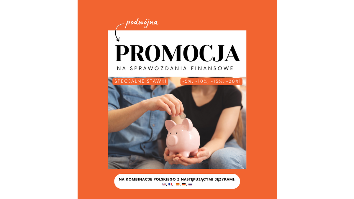 Nasza ubiegłoroczna promocja na tłumaczenia sprawozdań finansowych cieszyła się dużym zainteresowaniem, dlatego wracamy z nią ponownie — na tych samych, bardzo korzystnych warunkach.