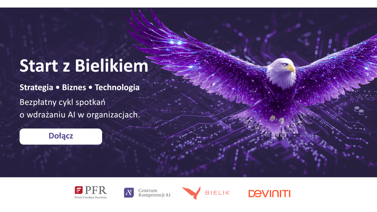 Wiele firm stoi dziś przed tą podobną decyzją: czy, gdzie i jak wdrażać sztuczną inteligencję, aby miała realny sens biznesowy. Różnica między udanym wdrożeniem, a kosztownym eksperymentem coraz częściej wynika nie z technologii, lecz z jakości decyzji podejmowanych na starcie. To właśnie te decyzje — strategiczne, organizacyjne i technologiczne — są punktem wyjścia do całego cyklu webinariów Start z Bielikiem |Strategia, biznes i technologia, które PFR wspólnie organizuje z Bielikiem i firmą Deviniti.