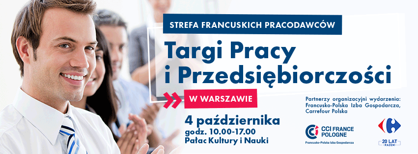 <p style="text-align: justify;"><strong>Już 4 października, na Targach Pracy i Przedsiębiorczości, które odbywać się będą w Pałacu Kultury i Nauki, powstanie Strefa Francuskich Pracodawców. Firmy zrzeszone we Francusko-Polskiej Izbie Gospodarczej (CCIFP), będą poszukiwały pracowników do obsadzenia ponad 1 400 miejsc pracy w całej Polsce. Targi Pracy i Przedsiębiorczości to jedno z największych tego typu wydarzeń na Mazowszu.</strong></p>