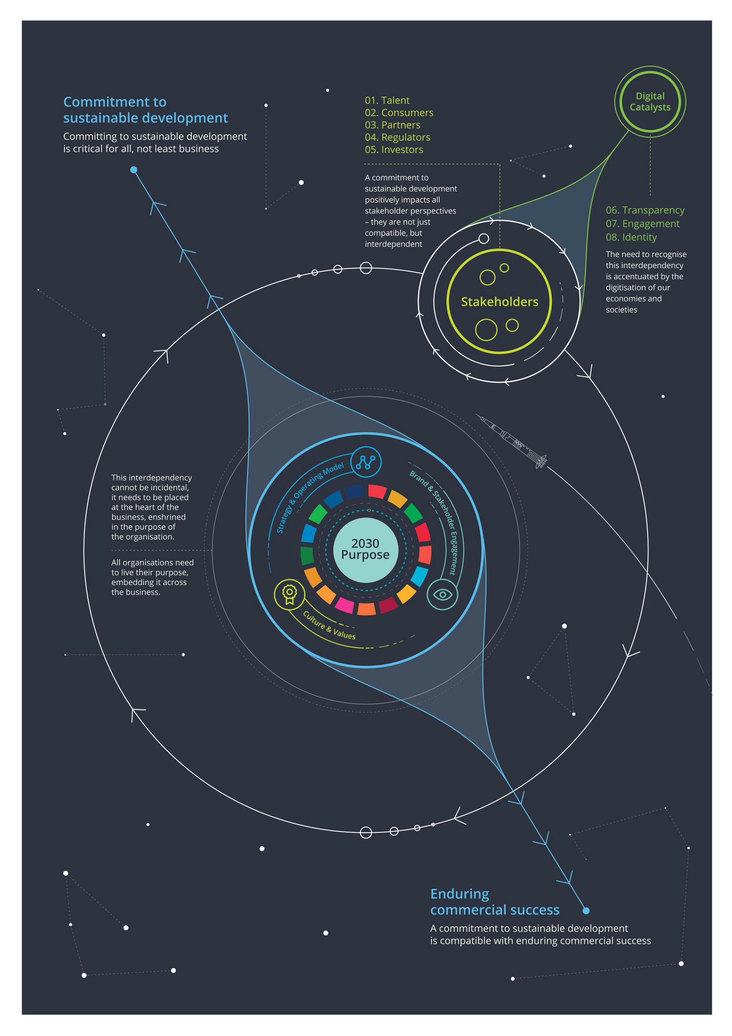 W aktywności na rzecz zrównoważonego rozwoju niezbędna jest przejrzystość, spójność oraz zaangażowanie. Tymczasem, z badania przeprowadzonego przez Deloitte wśród 150 brytyjskich spółek giełdowych o najwyższej kapitalizacji, które wchodz? w skład indeksu FTSE350, wynika, że tylko jedna czwarta spółek ma jasno wyznaczony cel zwi?zany z działaniem na rzecz dobra społecznego, ekonomicznego i środowiskowego. Co więcej, jedynie połowa z tej grupy wyraźnie opisała ten cel w swojej strategii. Spośród 17 celów zrównoważonego rozwoju zdefiniowanych przez ONZ firmy najczęściej wybierały te zwi?zane z: