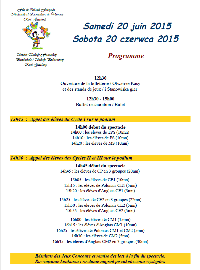 Święto Szkoły Przedszkola i Szkoły Podstawowej: sobota 20 czerwca od 12h30