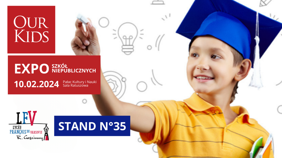 Szkoła Francuska w Warszawie będzie obecna, wraz z innymi międzynarodowymi i publicznymi szkołami, na targach Expo Our Kids, skierowanych do rodzin, które szukają wysokiej jakości szkoły. Podobnie jak w ubiegłym roku, wydarzenie odbędzie się w Pałacu Kultury i Nauki w Warszawie. Do zobaczenia 10 lutego!