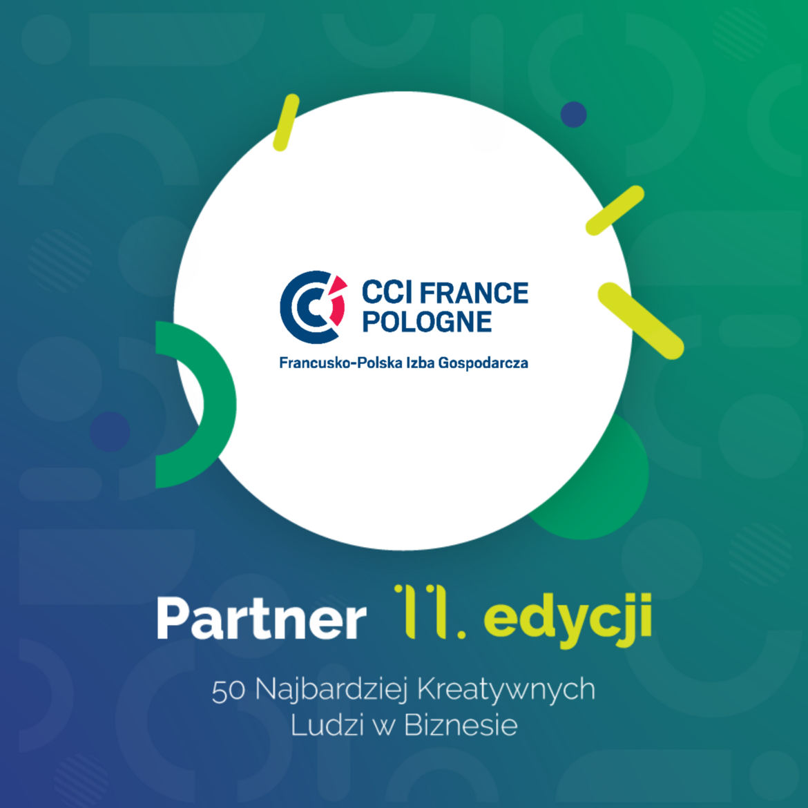 50. Najbardziej Kreatywnych Ludzi w Biznesie to całoroczny program, którego podstawę stanowi wymiana wiedzy, doświadczeń i możliwości biznesowych na kilku płaszczyznach. Organizatorów i laureatów rankingu wspiera Francusko-Polska Izba Gospodarcza, która już po raz kolejny ma zaszczyt być Partnerem rankingu.
