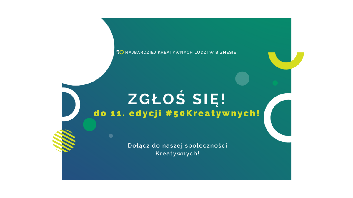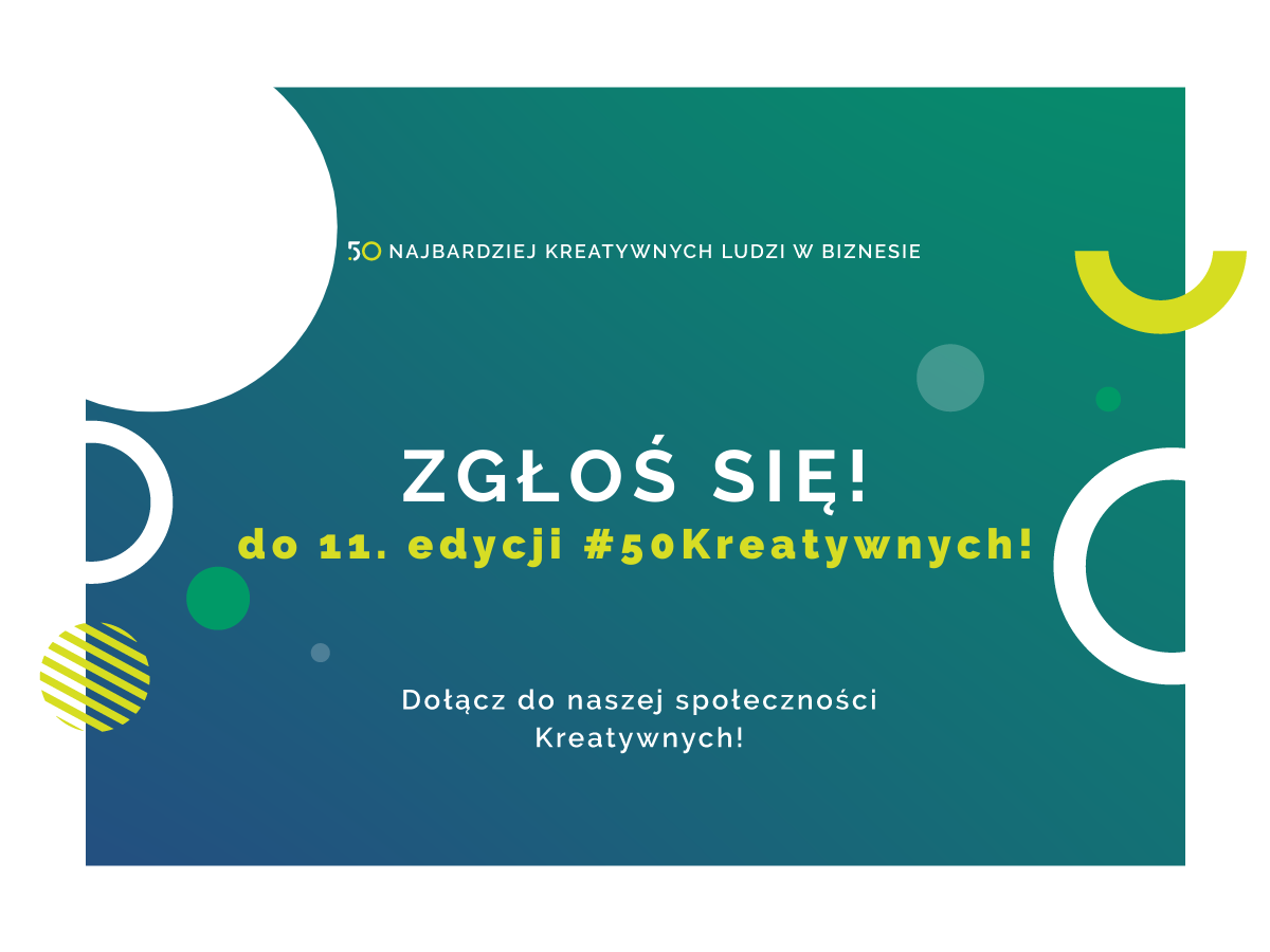 TO OSTATNI MOMENT ! Zgłoś się do 11. edycja rankingu 50 Najbardziej Kreatywnych Ludzi w Biznesie