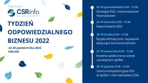- 28.10 [piątek]: Centra kompetencyjne ESG w spółce i rola menedżera ESG
