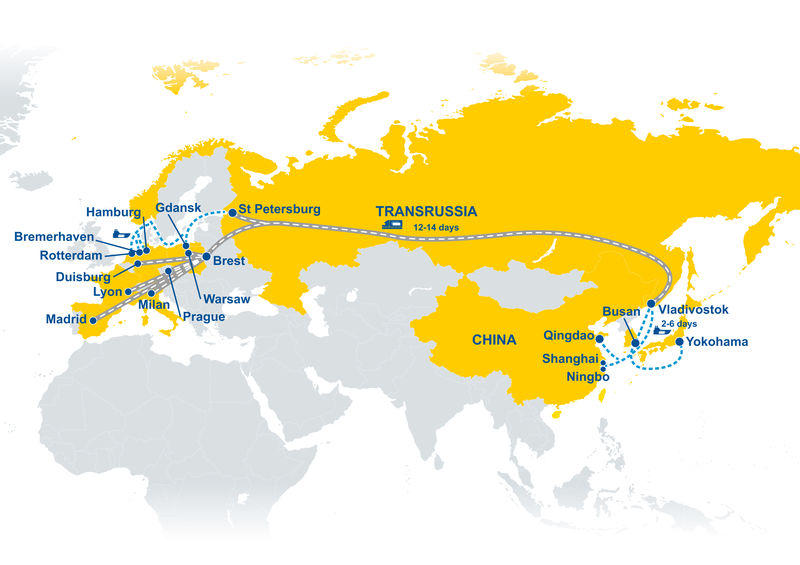 Towary klientów GEFCO są przewożone do portów w Chinach (Szanghaj, Ningbo, Qingdao), Korei Południowej (Pusan) i Japonii (Jokohama), a następnie transportowane statkami handlowymi do Władywostoku, gdzie po konsolidacji rozpoczyna się transport kolejowy do Europy. Towary są przewożone do portu w Petersburgu, z którego drogą morską docierają do Gdańska, Rotterdamu, Hamburga i Bremerhaven. Drugi szlak kolejowy wiedzie przez Małaszewicze/Brześć do Warszawy, Pragi, Duisburga, Mediolanu, Lyonu oraz Madrytu. Transport morski z krajów nadania do Władywostoku trwa od 2 do 6 dni, a kolejne 12-14 dni zajmuje transport kolejowy do Europy. W konsekwencji mamy do czynienia ze zintegrowaną usługą logistyczną, która umożliwia transport towarów z Azji do Europy Zachodniej w mniej niż 30 dni.