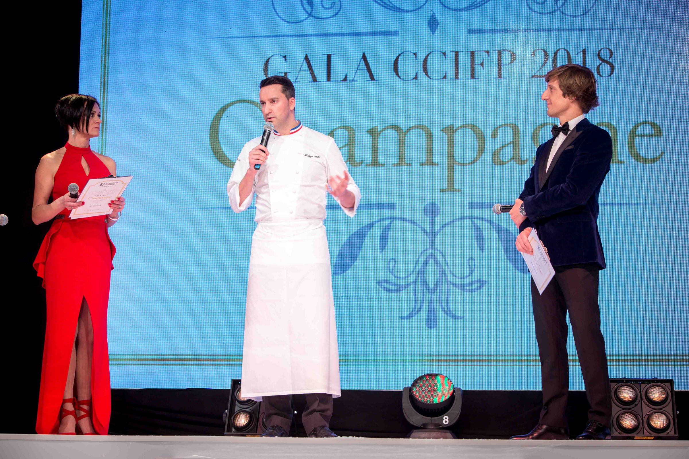 Philippe Mille od 2010 roku jest szefem kuchni restauracji Le Parc oraz Brasserie Le Jardin w posiadłości Domaine Les Crayères. Wielokrotnie zdobywał najważniejsze nagrody świata kulinarnego. Jego talent został doceniony również przez recenzentów Przewodnika Michelin, którzy wyróżnili go dwiema gwiazdkami. Kuchnia Mille’a zbudowana jest wokół trzech osi, jakimi s?: produkt, sposób jego przyrz?dzenia oraz przyprawienia. Na Gali CCIFP Szef Mille przygotował danie główne: delikatne małże Św. Jakuba z nut? cytrusow? i esencj? z szampana oraz słupki z buraka żółtego i kandyzowanego selera, którym towarzyszyły płatki pieczarek brunatnych z chrupi?c? posypk? z kasztanów. Smak dania podkreślił Champagne Perrier-Jouët Blason Rosé.