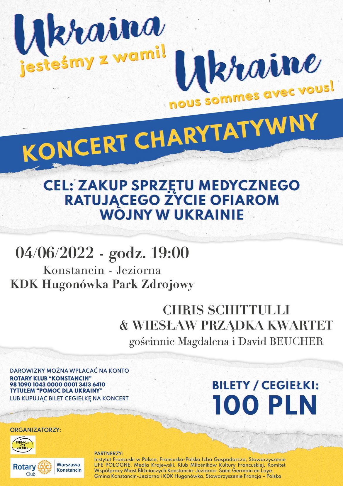 Punktem kulminacyjnym akcji jest koncert charytatywny, który odbędzie się w Konstancińskim Domu Kultury „Hugonówka” 4 czerwca 2022 r, (sobota) o godz.19.00.