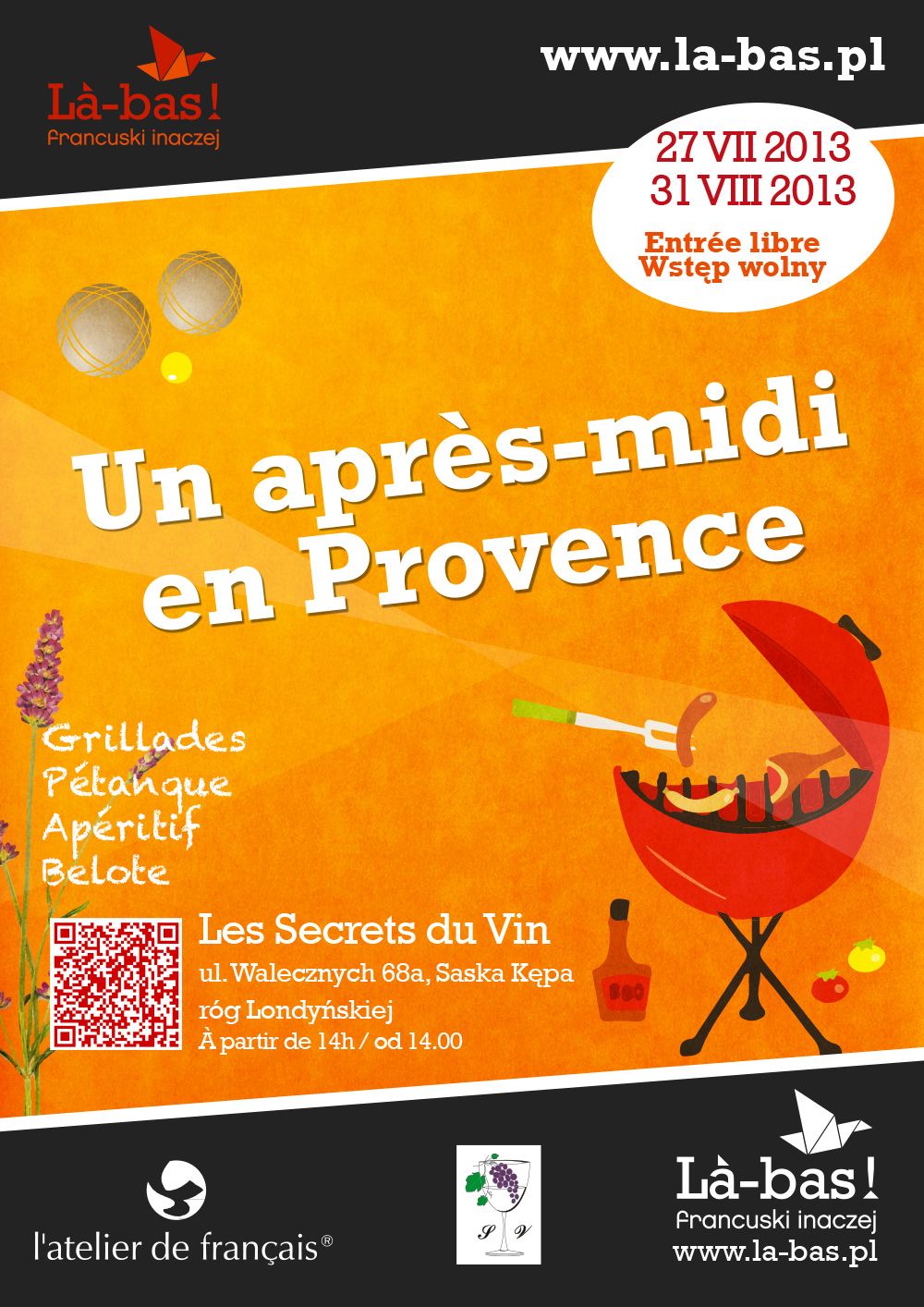 Na frankofońskie wydarzenie w rytm słonecznyh dźwięków, zapraszamy od godziny 14 do samego wieczora. Nie trzeba mówić po francusku. Zabierz tylko ze sob? okulary słoneczne i japonki i przyjdź skorzystać ze śródziemnomorskiej „farniente”!