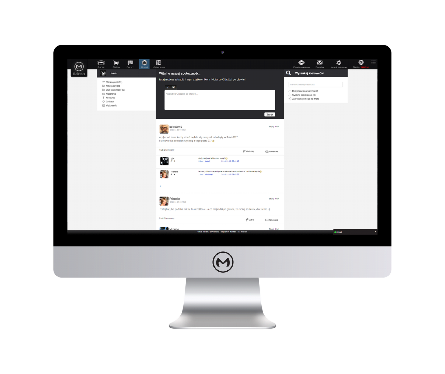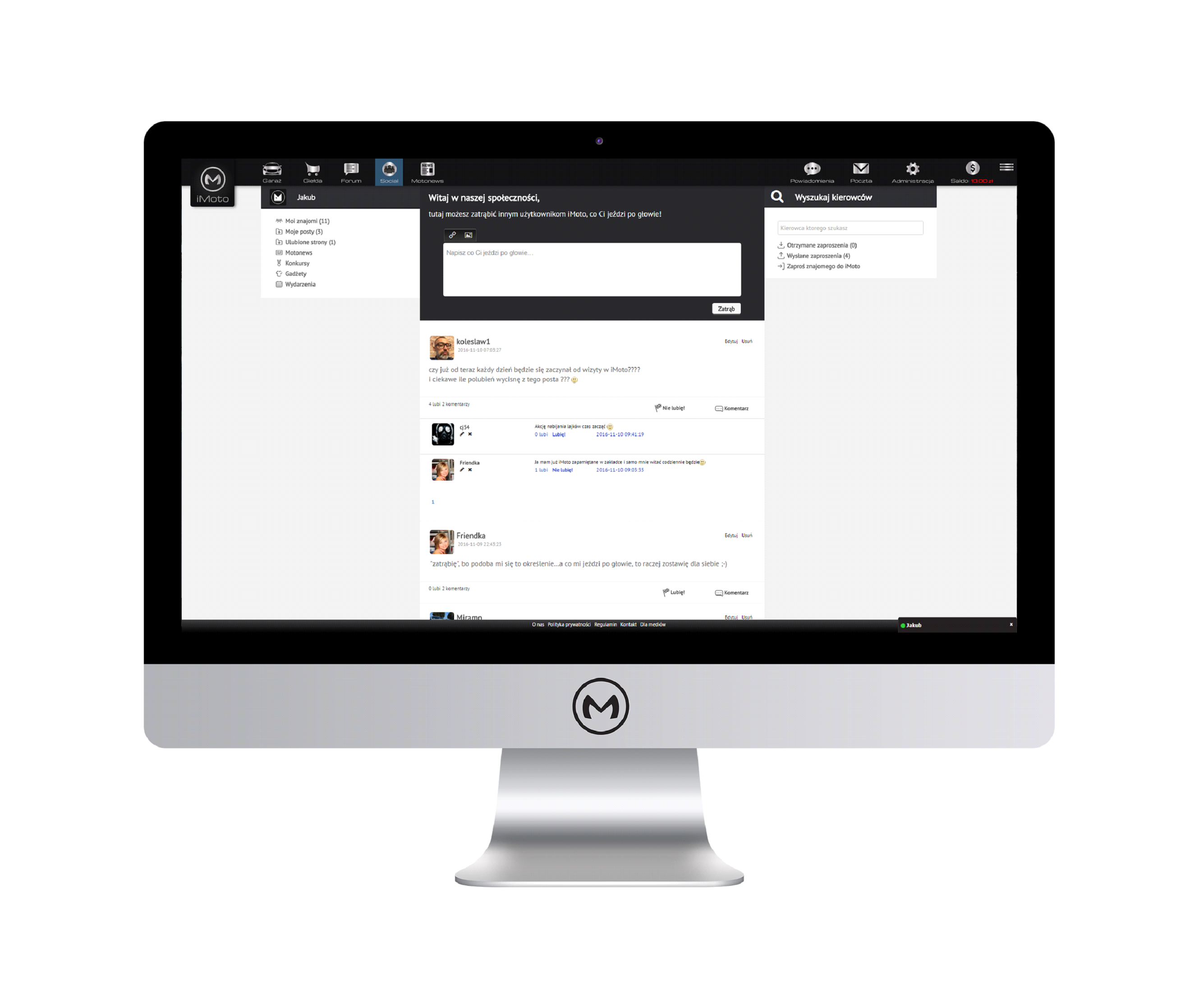 iMoto to wirtualne miejsce, gdzie spotykaj? się użytkownicy różnych pojazdów, dlatego nie mogło zabrakn?ć części społecznościowej. Forum jest miejscem, na którym można znaleźć odpowiedź na trudne pytania, a także stworzyć zupełnie nowy w?tek i poprosić innych użytkowników o ich opinie czy doświadczenia. Z kolei sekcja „Social” to medium społecznościowe, które w zupełnie luźnej atmosferze pozwala wymieniać się przemyśleniami między znajomymi czy marzeniami zwi?zanymi ze światem dwóch lub czterech kółek.