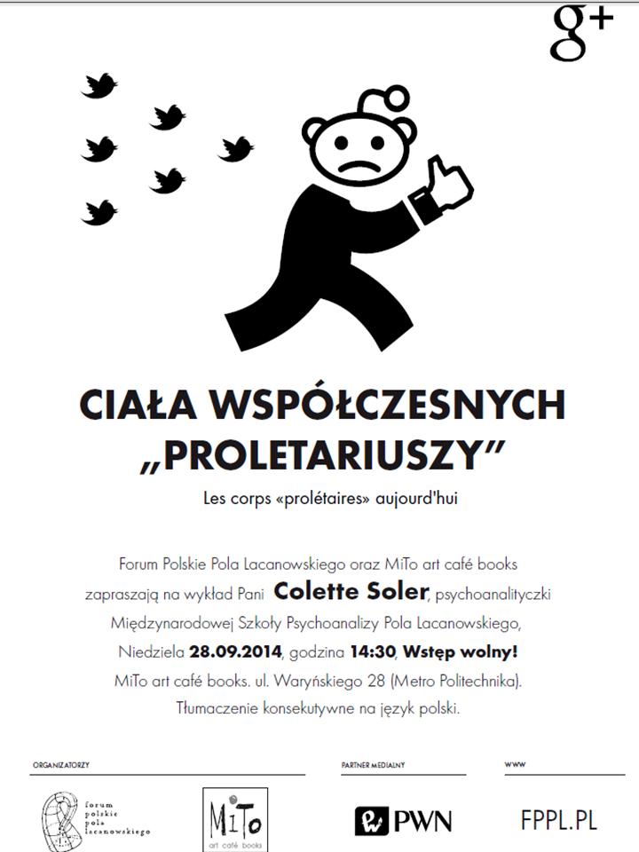 „Mówi?c o kapitalizmie, Lacan stwierdził, że każda jednostka jest proletariuszem, to znaczy, że „nie dysponuje niczym, by stworzyć więź społeczn?”. Tym samym termin „proletariusz” nie jest przezeń rozumiany jak u Marksa w znaczeniu klasy społecznej, lecz został uogólniony i powi?zany ze stanem obecnego dyskursu. W jaki sposób psychoanaliza doszła do takiej konkluzji?” – Colette Soler