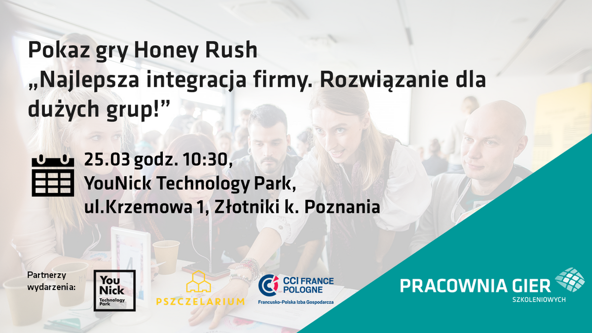 Wraz z Pracowanią Gier Szkoleniowych serdecznie zapraszamy nasze firmy stowarzyszone do Poznania na premierowe spotkanie z grą Honey Rush!