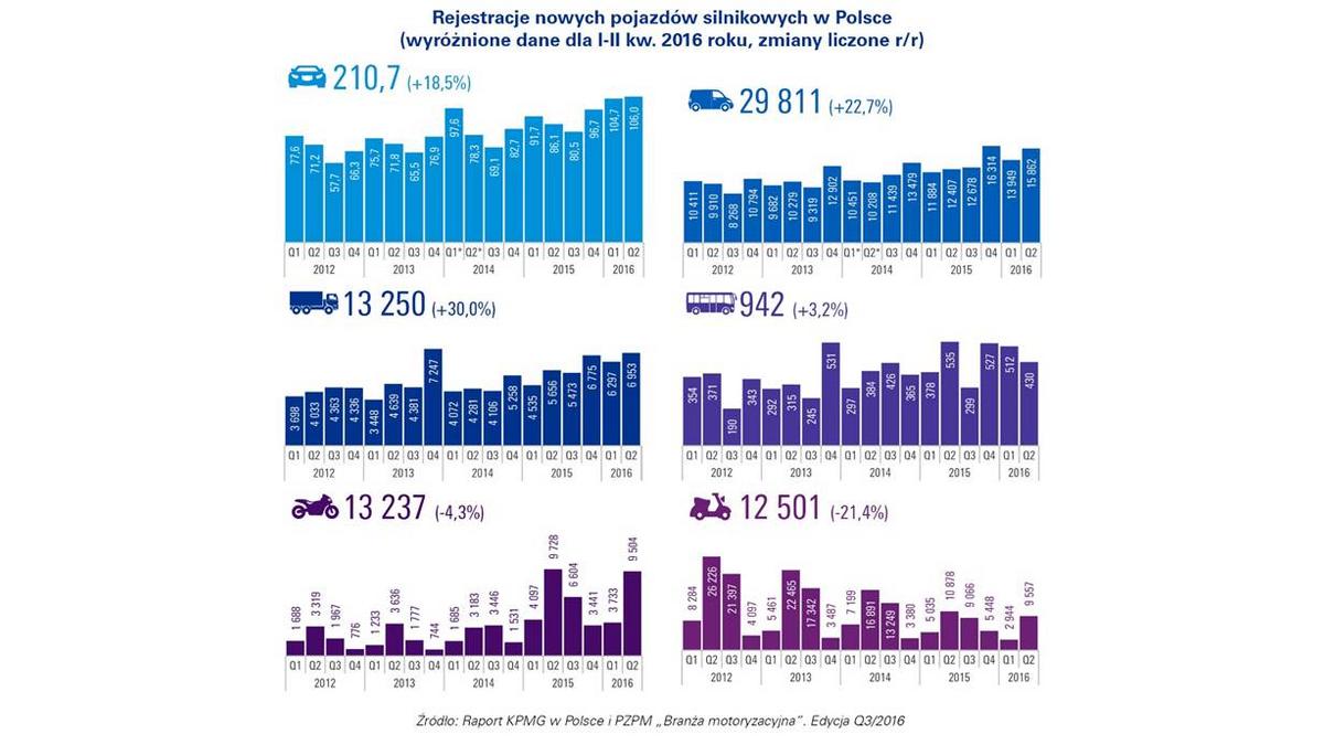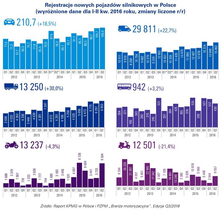 Raport kwartalny PZPM i KPMG w Polsce „Branża motoryzacyjna”, Edycja Q3/2016 należy do serii raportów kwartalnych, których celem jest przedstawienie bież?cych trendów w branży motoryzacyjnej w Polsce, rozumianej zarówno jako rynek motoryzacyjny, jak i produkcja przemysłowa oraz motoryzacyjne usługi finansowe. Analiza oparta jest o najnowsze dostępne dane rejestracyjne, statystyczne i rynkowe. Publikacja jest wspólnym przedsięwzięciem Polskiego Zwi?zku Przemysłu Motoryzacyjnego oraz KPMG w Polsce.