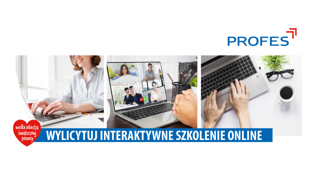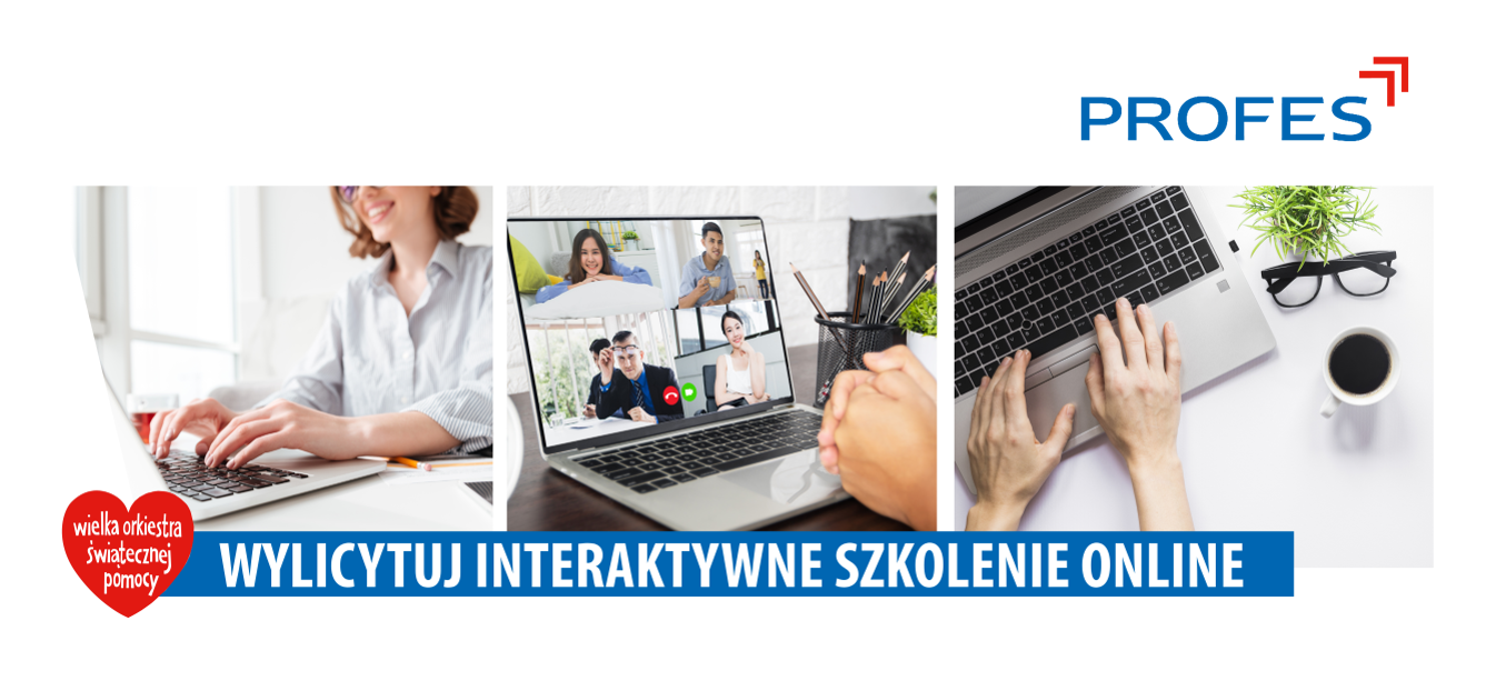 Jak co roku firma doradczo-szkoleniowa PROFES wspiera Wielką Orkiestrę Świątecznej Pomocy. Choć w ramach poprzednich finałów przedmiotem aukcji były szkolenia stacjonarne, w tym roku zapraszamy Państwa do wyjątkowej licytacji szkolenia realizowanego w interaktywnej formule online.