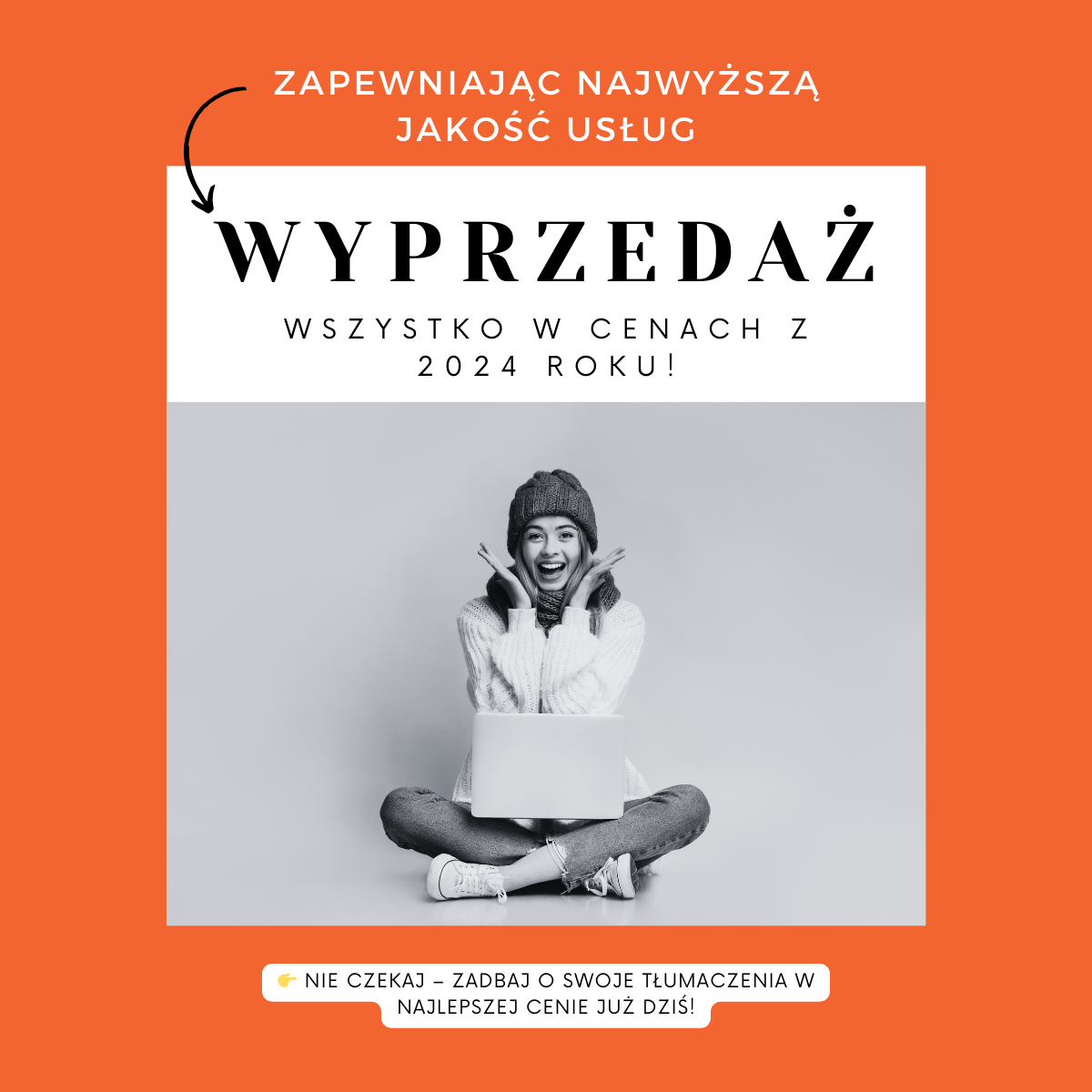 Nowy Rok, ale bez nowych cen! W Balajcza ogłaszamy WYPRZEDAŻ – do końca lutego oferujemy wszystkie nasze usługi tłumaczeniowe w cenach z 2024 roku. Żadnych podwyżek, tylko profesjonalne usługi za atrakcyjne stawki!