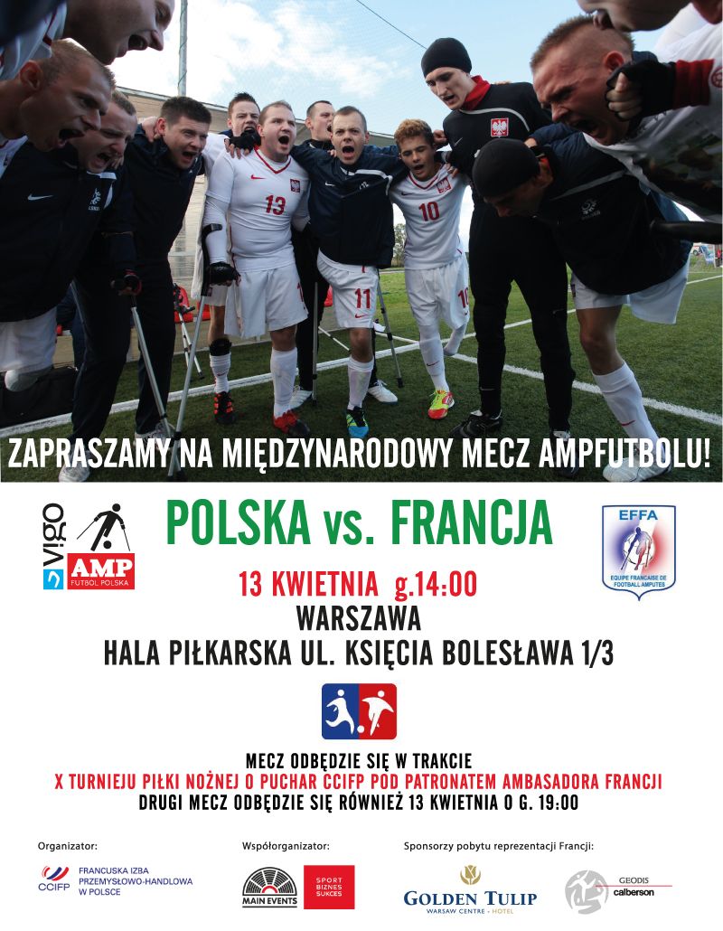 Serdecznie zapraszamy wszystkich zainteresowanych do wsparcia swoich drużyn, a także do kibicowania reprezentacjom Polski i Francji w AMP Futbolu! Strona Stowarzyszenia "Amp Futbol"