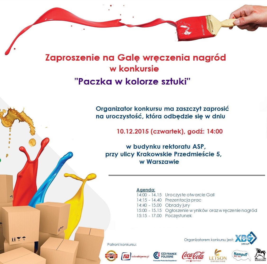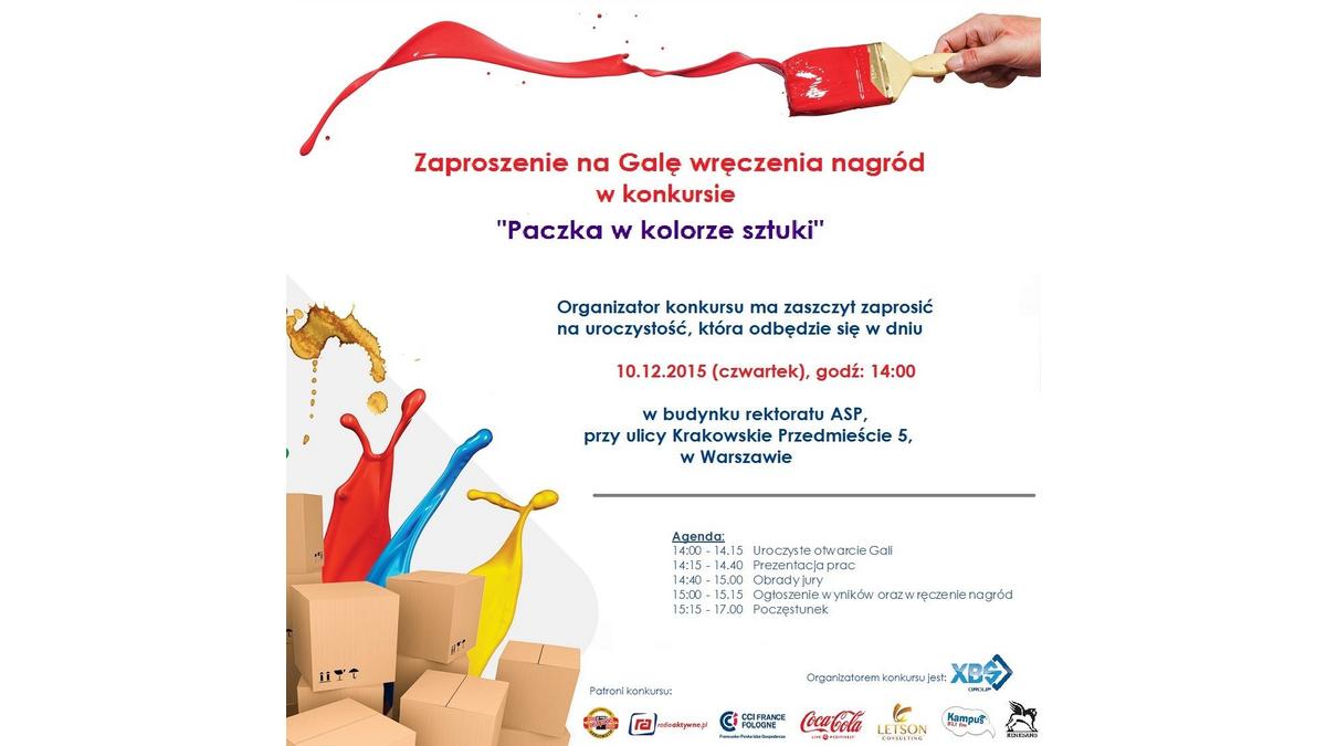 Zaproszenie na Galę wręczenia nagród w konkursie "Paczka w kolorze sztuki"