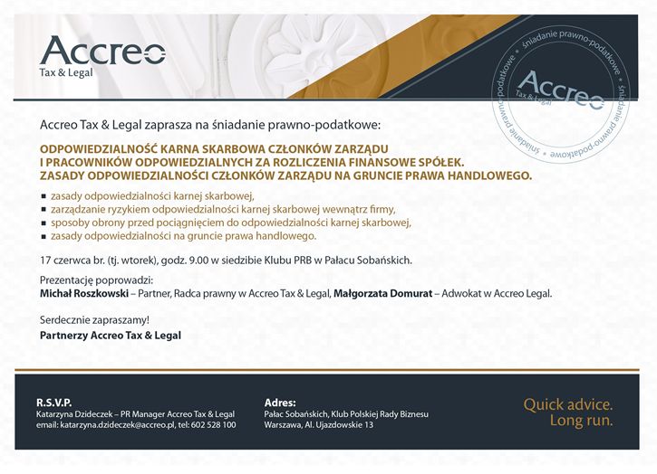 Partner • Partenaires Zaproszenie na śniadanie podatkowo-prawne / odpowiedzialność KKS 10/06/2014 • by : katarzyna.szczecinska(@)ccifp.plVoir en mode carouselVoir en mode mosaïque>(kliknij w obrazek aby powiększyć)