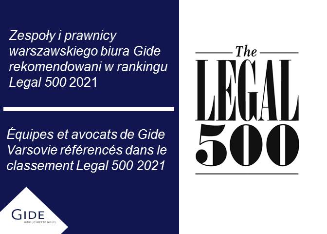 Zespoły i prawnicy warszawskiego biura kancelarii Gide z rekomendacjami w rankingu Legal 500 2021