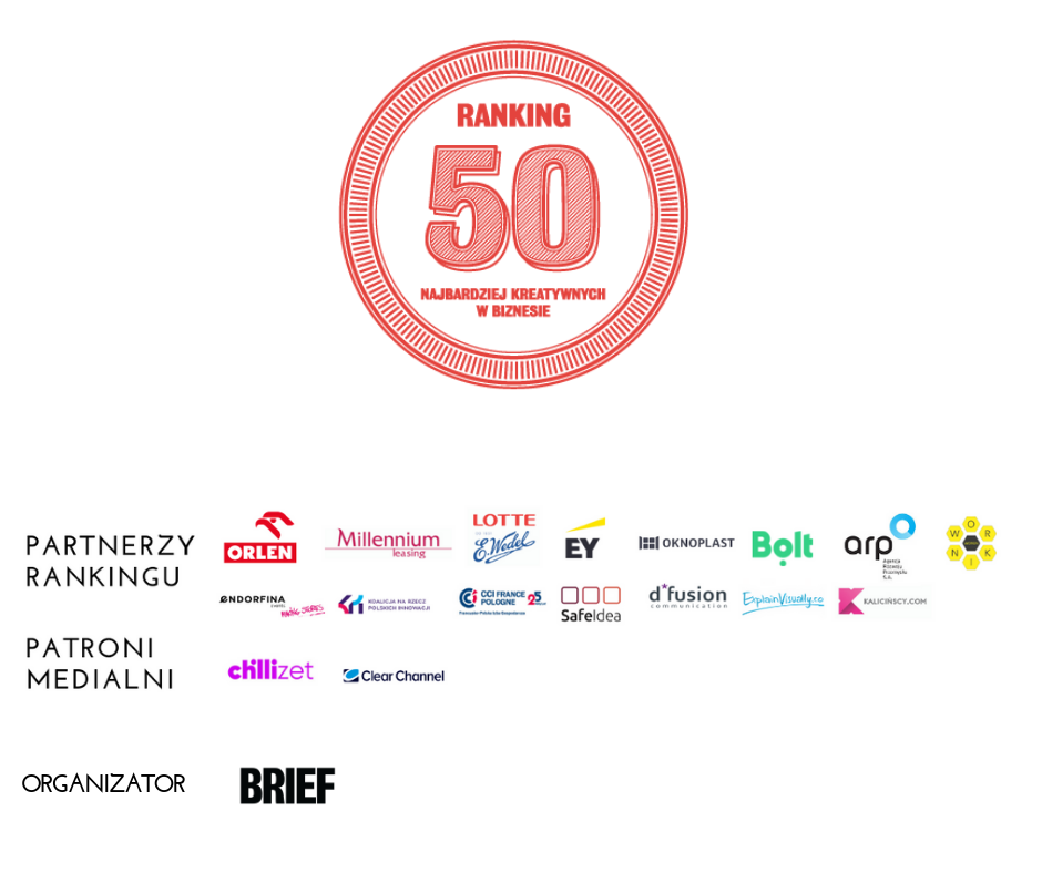 Ruszyły zgłoszenia do 9. edycji rankingu “50 Najbardziej Kreatywnych w Biznesie”. Jest to coroczne zestawienie przedstawicieli firm i startupów, których działania charakteryzuje innowacja oraz kreatywność – nie tylko jeśli chodzi o produkt bądź usługę, ale również sposób ich promocji. Ranking organizowany jest przez serwis Brief.pl, a partnerami są między innymi PKN ORLEN, Millennium Leasing, Lotte Wedel, EY Polska, Oknoplast, Bolt.