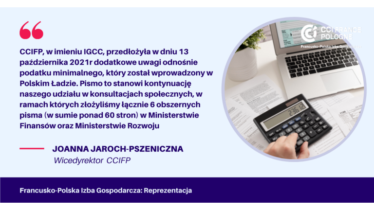 CCIFP, w imieniu IGCC, przedłożyła w dniu 13 października 2021r dodatkowe uwagi odnośnie podatku minimalnego, który został wprowadzony w Polskim Ładzie