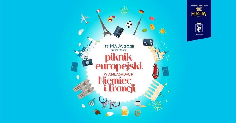 17 maja, w godzinach od 13:00 do 18:00, z okazji Europejskiej Nocy Muzeów, Ambasada Francji zaprasza na europejski piknik w ogrodach.