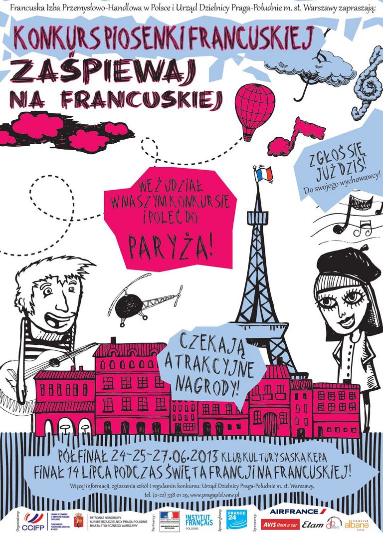 Francuska Izba Przemysłowo-Handlowa w Polsce (CCIFP) wraz z Urzędem Dzielnicy Praga-Południe, organizują konkurs piosenki francuskiej „Zaśpiewaj na…
