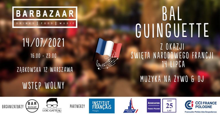Zapraszamy na wielką zabawę taneczną z okazji obchodów święta narodowego Francji, która odbędzie się 14 lipca w BARBAZAAR na warszawskiej Pradze.
