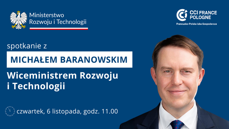 Siedziba CCIFP • WarszawaZapraszamy na spotkanie firm CCIFP z Michałem Baranowskim, Podsekretarzem Stanu w Ministerstwie Rozwoju i Technologii.