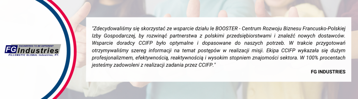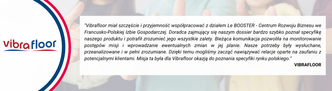 Le Booster - Centrum Rozwoju Biznesu pomaga firmom polskim i francuskim w pozyskiwaniu wiarygodnych partnerów biznesowych. Jesteśmy do dyspozycji na każdym etapie nawiązywania kontaktów handlowych, a naszym celem jest doprowadzenie do spotkania między polskimi i francuskimi firmami zainteresowanymi współpracą.