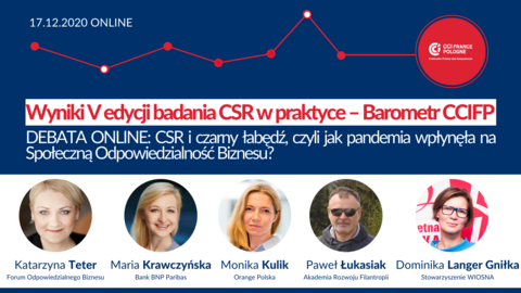 Wyniki badania Barometr CCIFP - CSR w praktyce oraz debata - CSR, a czarny łabędź, czyli wpływ pandemii na działania odpowiedzialnego biznesu.