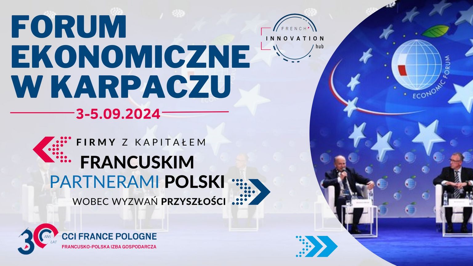 Po raz kolejny CCIFP wraz z firmami stowarzyszonymi będzie obecna na Forum Ekonomicznym w Karpaczu. Chcemy tym sposobem podkreślić silne partnerstwo polsko-francuskie, a także pokazać rolę i dobre praktyki inwestorów francuskich obecnych w Polsce.