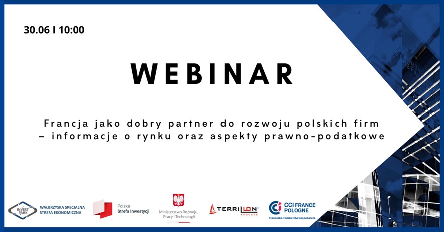 WSSE „INVEST-PARK” sp. z o.o. w ramach Wałbrzyskiej Strefy Eksportera, wspólnie z Francusko-Polską Izbą Gospodarczą, przy wsparciu merytorycznym Ministerstwa Rozwoju, Pracy i Technologii oraz Kancelarii Adwokackiej TERRILLON AVOCATS ma przyjemność zaprosić Państwa na spotkanie "Francja - dobry partner do rozwoju polskich firm – informacje o rynku oraz aspekty prawno - podatkowe".