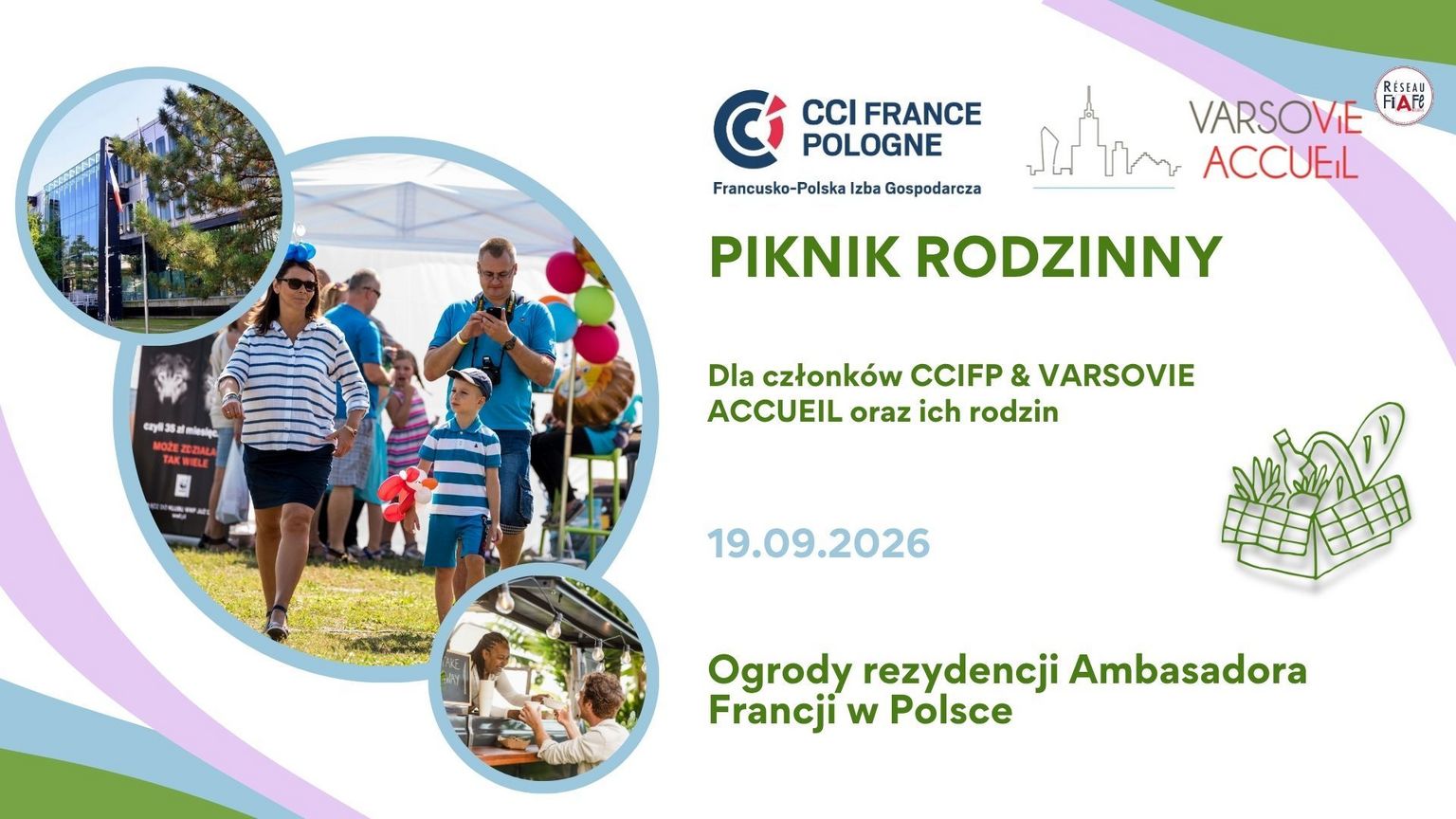 Zapraszamy na godz. 12:00 w sobotę 19 września 2026 roku do magicznych ogrodów rezydencji Ambasadora Francji, gdzie odbędzie się już trzecia edycja pikniku CCIFP!?
