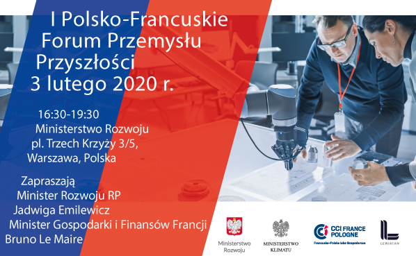 Francusko-Polska Izba Gospodarcza wraz z Ministerstwem Rozwoju, Ministerstwem Klimatu i Konfederacją Lewiatan zaprasza na I Polsko-Francuskie Forum Przemysłu Przyszłości, które odbędzie się w ramach wizyty Prezydenta Emmanuela Macrona w Polsce.