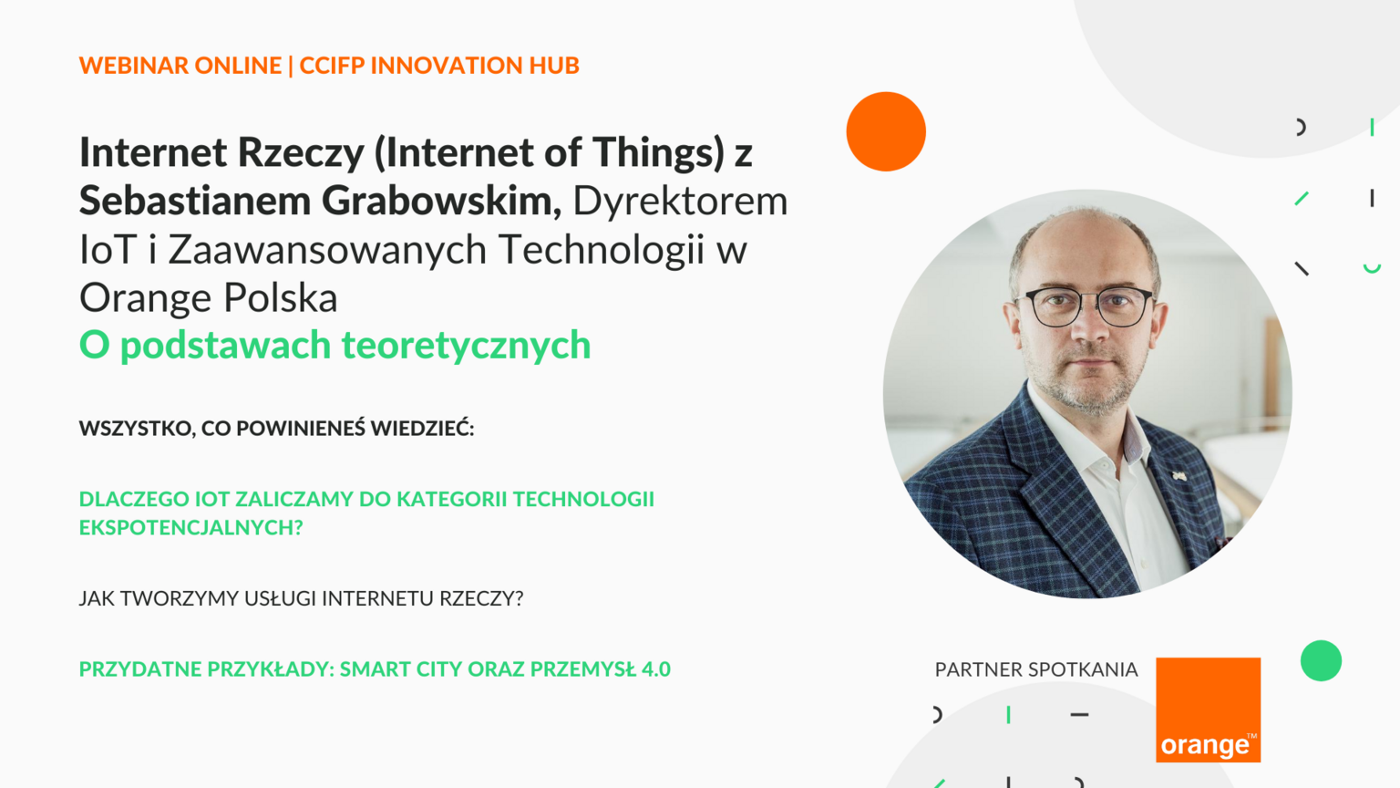 O tym, czym naprawdę jest Internet Rzeczy, co powinno się o nim wiedzieć i jakie zastosowanie IoT ma w sektorze publicznym i w przedsiębiorstwach opowie nam Sebastian Grabowski, Dyrektor IoT i Zaawansowanych Technologii Orange Polska.