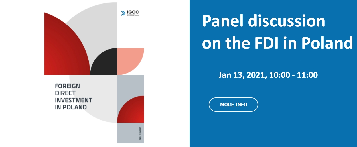 The starting point of our discussion will be the latest IGCC report entitled "Foreign Direct Investment in Poland". The meeting will be held on Wednesday, January 13th, 10:00-11:00 a.m. via the Webex platform.
