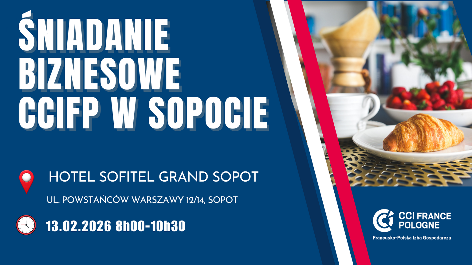 Zgodnie z tradycją CCIFP zapraszamy na Noworoczne Śniadanie Biznesowe, które odbędzie się 13 lutego 2026 r. w Sopocie o godz. 8.00, w prestiżowych wnętrzach Sofitel Grand Sopot.