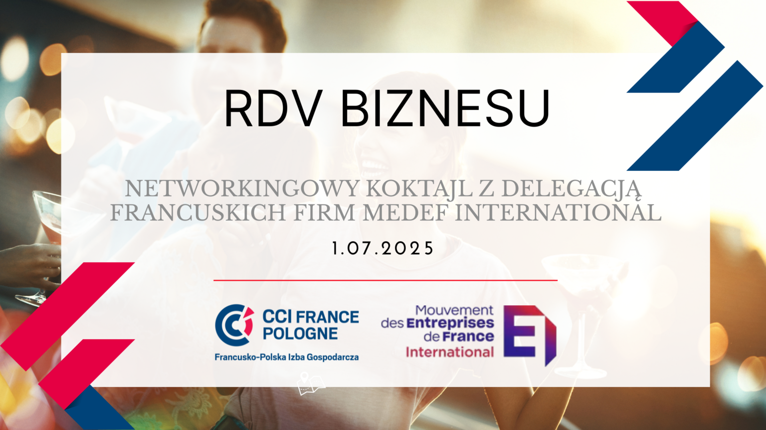 Najbliższe Rendez-vous biznesu będzie doskonałą okazją do nawiązania nowych relacji nie tylko z pozostałymi członkami CCIFP, ale również delegacją misji gospodarczej firm z Francji organizowaną przez MEDEF International – największą organizację pracodawców we Francji. Właśnie tego dnia kilkanaście firm reprezentujących takie sektory jak przemysł spożywczy, biogaz, przemysł obronny i kosmiczny, przyjedzie do Warszawy, by poznać nowe perspektywy rozwoju i nawiązać relacje handlowe z potencjalnymi partnerami w Polsce.